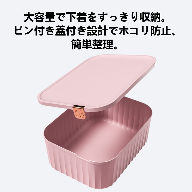 大容量で下着をすっきり収納。ビン付き蓋付き設計でホコリ防止、簡単整理。家庭用に最適な収納ボックス。